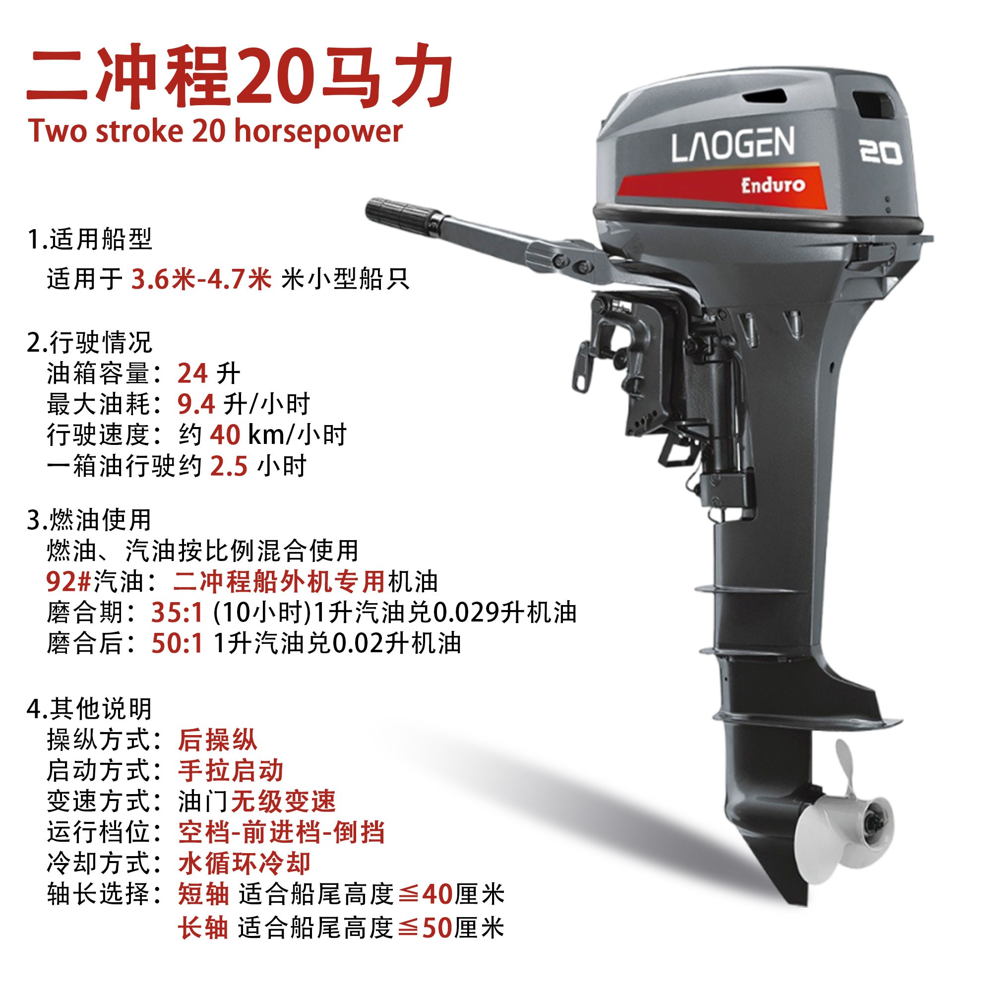 ◇ LG20BML - 手动启动,舵柄,横梁高度 - 长轴
